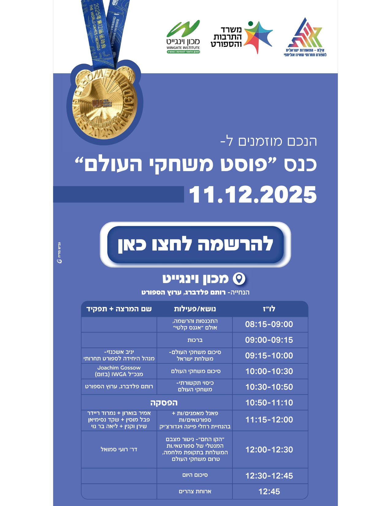 הנחות לספורטאים מצטיינים במכון ויינגייט.