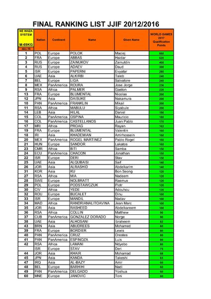 מקצוע: נה וואזה עד משקל 69 ק"ג תאריך: 26/11/2016